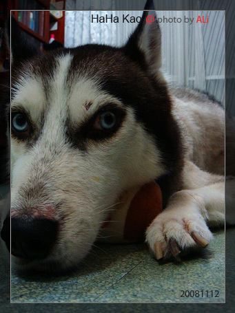 話說三個月前換到永和朋友介紹的獸醫院去治療他那犯的兩年的皮膚病,身上老是紅一塊塊的,無法根治,另外毛在六月底剃後卻也長不出來,簡直想癩痢狗般。治療前期有不盡理想,到一個半月後就比較穩定,身上的兩層毛如雨後春筍般冒出,現在終於像正常的哈士奇了。